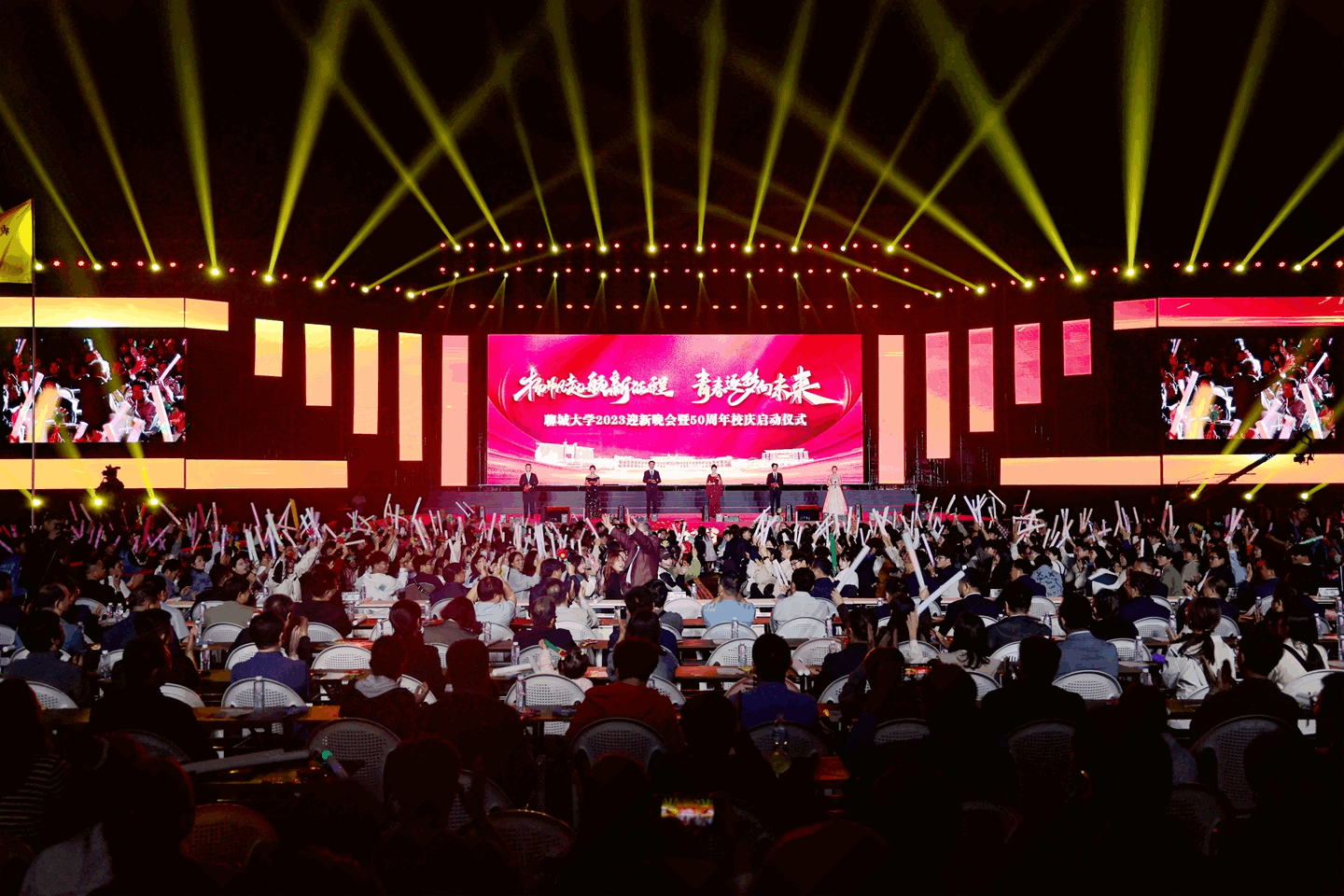 9月26日晚,“扬帆启航新征程 青春逐梦向未来”聊城大学2023迎新晚会暨50周年校庆启动仪式在西校区南田径场举办。