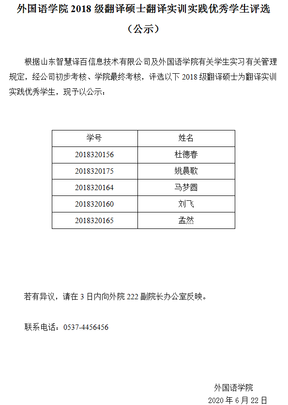 亚洲杯投注 2018级翻译硕士翻译实训实践优秀学生评选公示