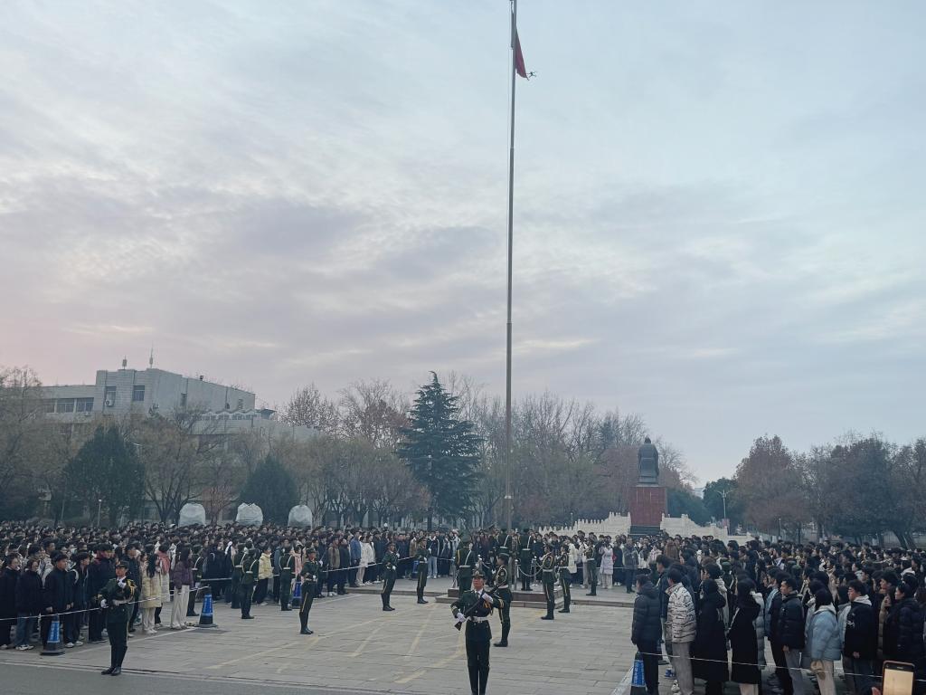 为纪念“一二·九”运动89周年,发扬爱国精神,12月9日上午7时,亚洲杯投注 第二十六届国旗护卫队于科技实验大楼前隆重举行升旗仪式。亚洲杯投注 2024级学生观看仪式并齐唱国歌。
