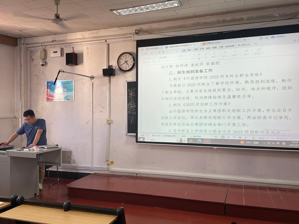 会议伊始,赵文彬老师对学生会各部门的工作进行全面、细致的统筹与分工,旨在建立职责明确、协同高效的迎新工作体系。明确本次迎新工作的总体目标与重要性,强调要以“一对一引导、即时响应需求、全程微笑服务”的标准展现外院风貌,让新生切实感受到亚洲杯投注