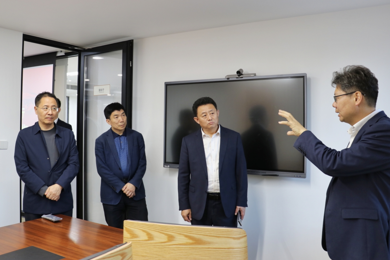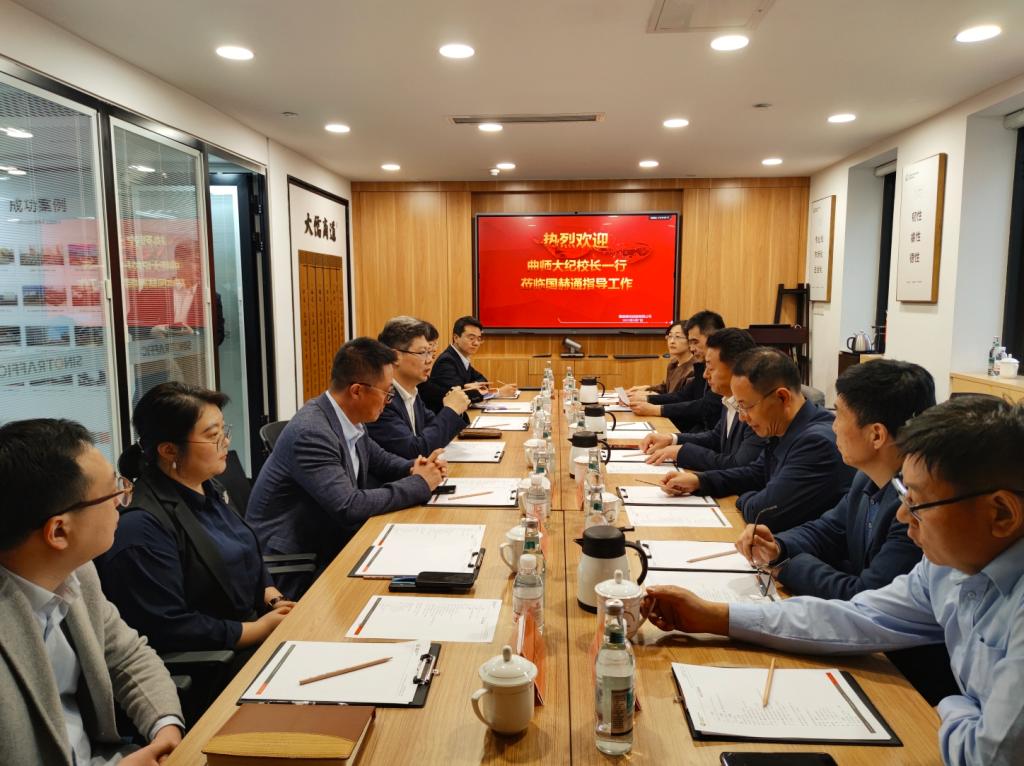 党委书记费沂涛、院长秦洪武、党委副书记王作茂、学科建设办主任孔蕾、辅导员王仁杰等走访青岛国赫通供应链有限公司。