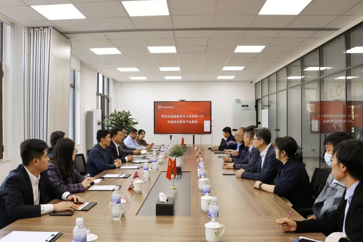 党委书记费沂涛、院长秦洪武、党委副书记王作茂、学科建设办主任孔蕾、辅导员王仁杰等走访青岛英谷教育科技股份有限公司。