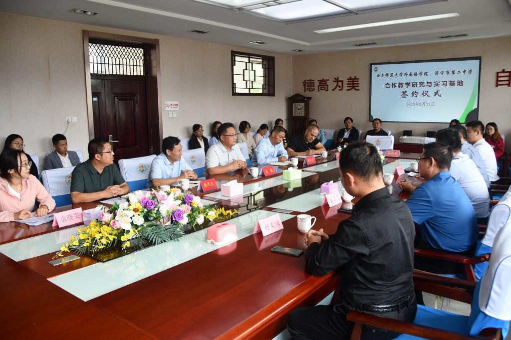与济宁二中合作教学研究与实习基地签约仪式举行。济宁二中党支部书记、校长左磊,党支部副书记谢云剑,副校长展代立,办公室、教务处、团委负责人,济宁二中全体英语教师出席仪式,亚洲杯投注