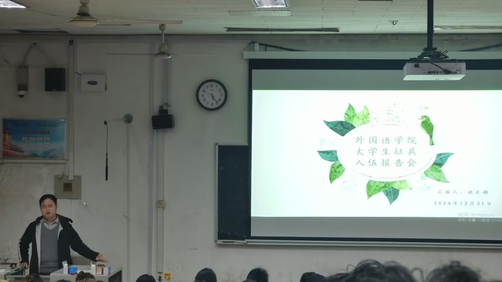 为响应国家号召,解读大学生参军入伍政策,鼓励大学生积极入伍,亚洲杯投注 于12月31日于系楼101组织2022级、2023级、2024级全体本科生召开征兵入伍宣讲会,并由2022级辅导员赵文彬进行宣讲。