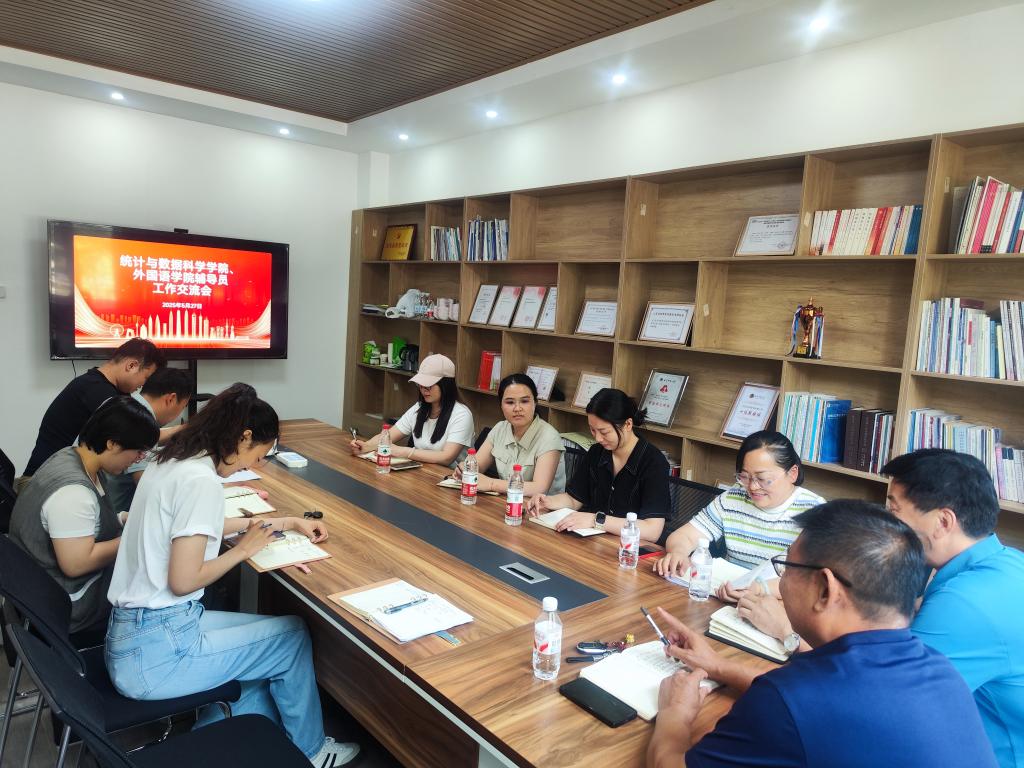 会议伊始,亚洲杯投注 党委副书记王作茂对统计与数据科学亚洲杯投注 领导老师的到来表示热烈欢迎,并结合亚洲杯投注 学生工作实际,介绍亚洲杯投注 辅导员分工安排,阐释以 “语言赋能 + 思想引领” 为核心的育人工作思路。统计与数据科学亚洲杯投注 党委副书记季中则围绕亚洲杯投注 特色,分享 “数据驱动管理、科创助力成长” 的辅导员工作体系,交流学科优势融入学生培育的实践路径。随后,两院辅导员聚焦学生管理共性问题,从学业帮扶、就业指导、班级建设等维度出发,结合一线工作案例深入研讨,凝聚“精准施策、协同育人”共识,互鉴经验做法,为优化学生工作方法、提升育人成效拓宽了思路。