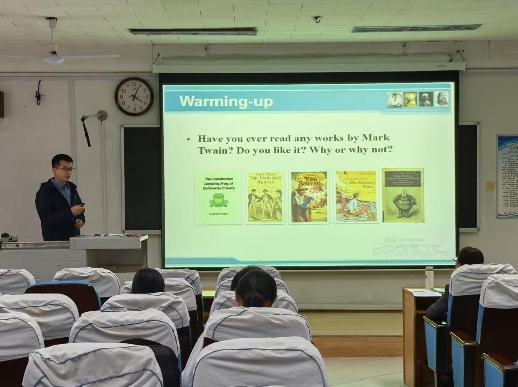 比赛现场,气氛热烈,精彩纷呈。各位青年教师精神饱满,各展其能,将先进的教学理念与现代化的教学手段巧妙融合,呈现了一堂堂设计精巧、内容丰富、互动高效的精彩授课。伊纪昌老师讲课声音洪亮,气场全开,逻辑层层递进,以思路娓娓牵引,展现了严密的课堂设计。周霞老师的英语思辨课则别出心裁,以例子吸引学生注意力,讲解生动有趣,课堂气氛活跃,学生参与度极高,充分体现了“以学生为中心”的教学理念。