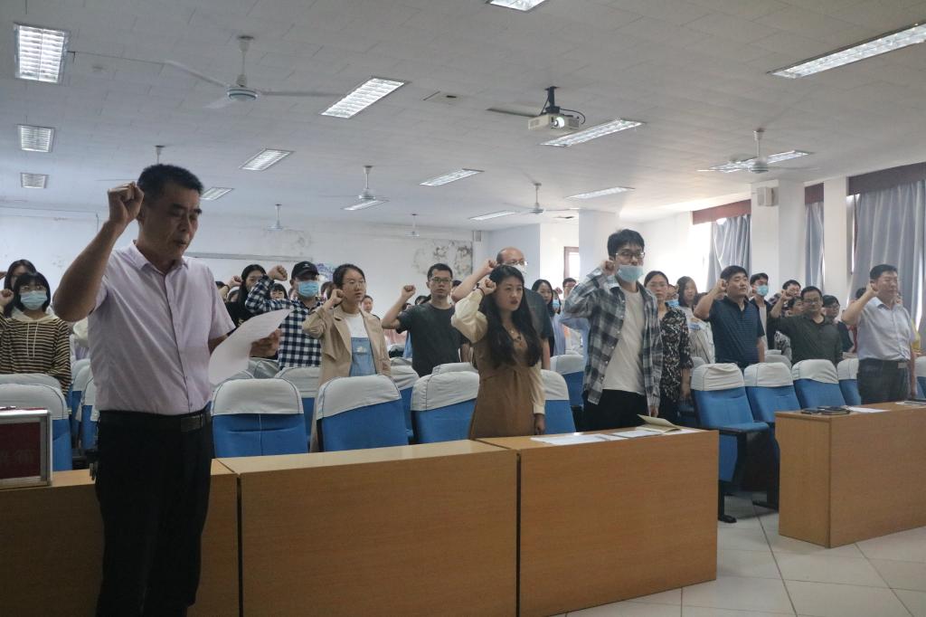 全体师生党员面向党旗严肃认真,郑重地举起右拳,铿锵有力地庄严宣誓。