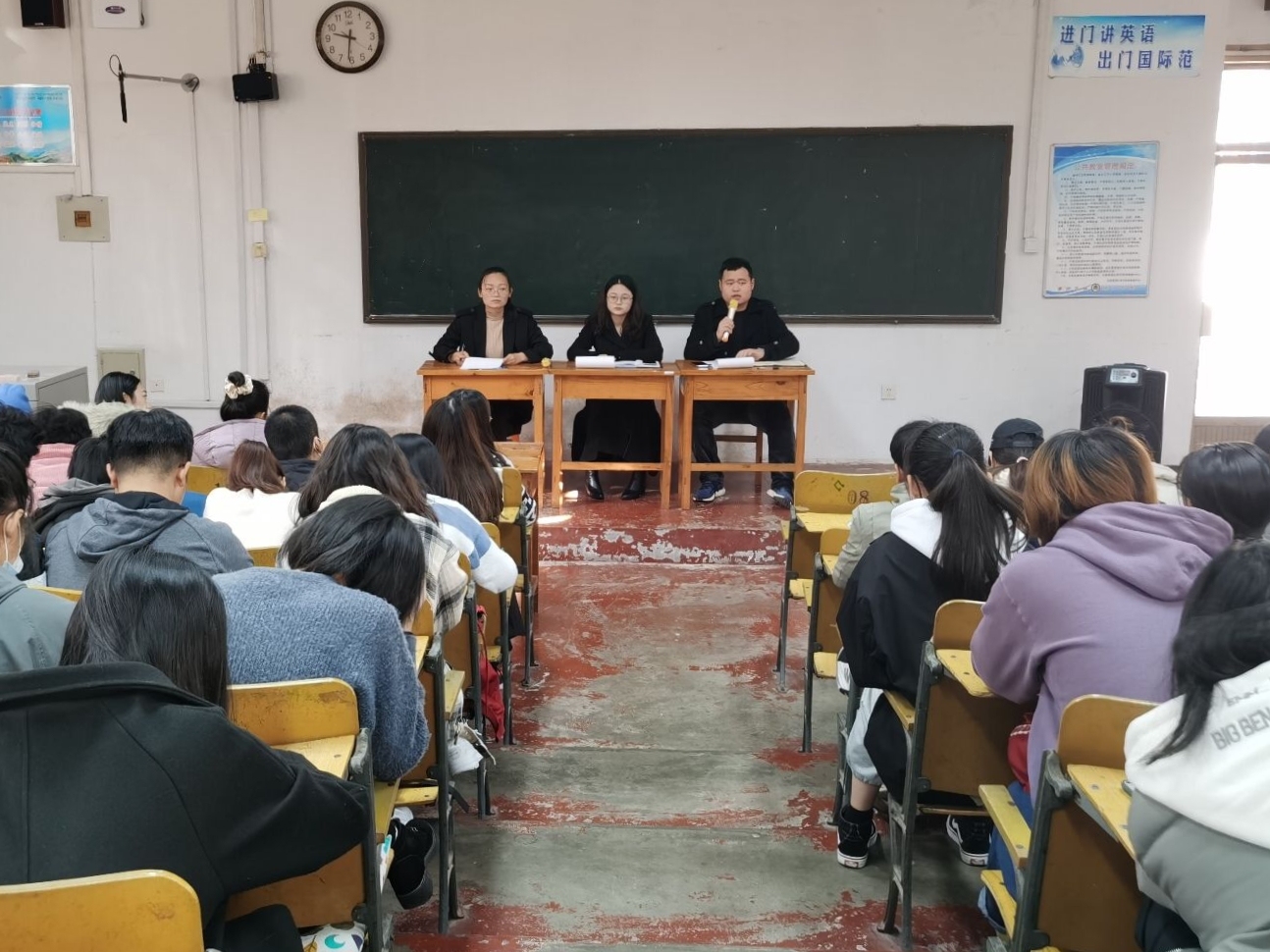 首先,2020级辅导员王伟对2020级新开设的劳动教育课程的实施方案进行了详细讲解,教学方案内容包括课程要求、课程实施办法、开设内容与学分配、课程考核、评分及成绩录入五个方面紧接着,宿管部部长魏文晴和卫生健康部部长魏哲对宿舍内务整理与教室卫生区清洁的评分标准进行了详尽的介绍。随后,2018级辅导员赵文彬强调了关注心理健康问题的重要性,希望心理健康信息员履行自身职责,悉心关切身边同学的心理健康,并及时向各级辅导员进行有效反馈,以保障同学们能够正确对待心理问题。最后,2019级辅导员张晓对会议内容进行了概括总结,再一次强调了劳动教育课和整理宿舍内务的重要性,着重提醒同学们注意财产安全,并要求各位学生干部准确无误地传达会议内容。