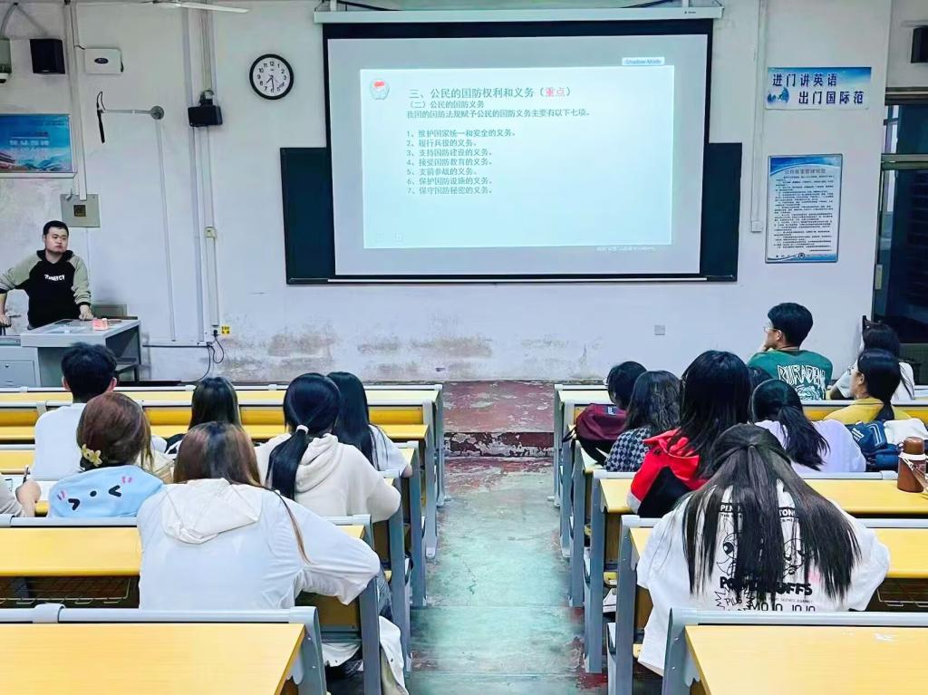 首先,赵文彬老师介绍了我国国防法规体系的不同层次和法律效力、兵役法、兵役制度的实施方法及其要求、我国国防法修订与修改的发展历程及国防教育走上法制化道路的历程。接着,赵文彬老师重点讲解有关我国公民具有的国防权利和应当承担的义务,同时列举了身边可能出现的违法犯罪行为。他为同学们指明如何在维护国家安全中尽责,帮助同学们深入了解国防工作的内容和重要性。