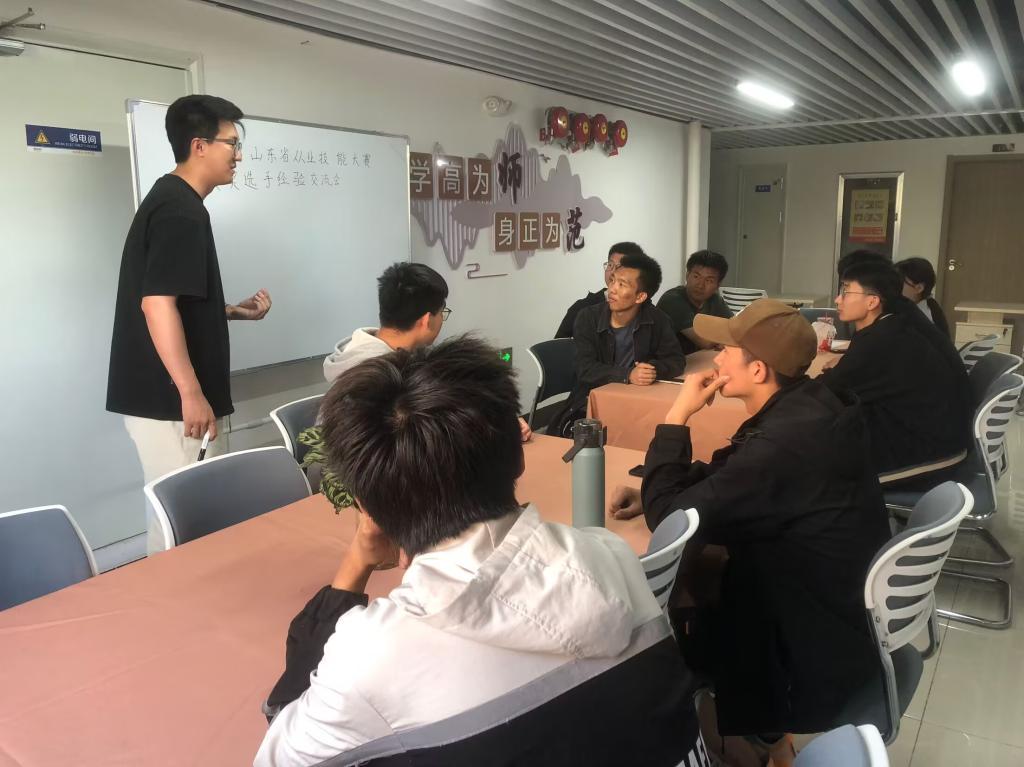 于西校区4号楼“一站式”学生社区明心驿站举办师范类高校学生从业技能大赛经验分享会。本次活动邀请山东省师范类高校学生从业技能大赛一等奖获得者张男纪元为同学们分享比赛经验及心得体会。
