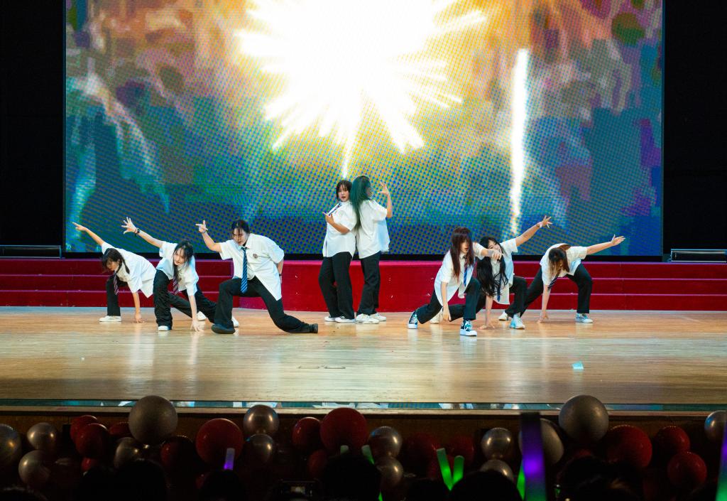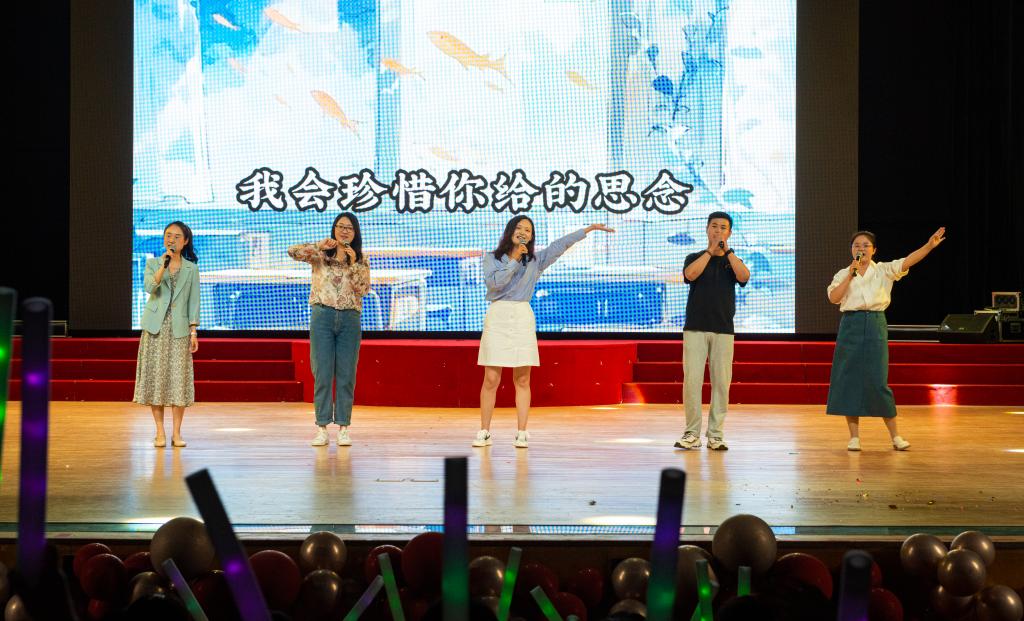 晚会开始前,同学们共同观看毕业主题Vlog,追忆往昔四年同窗青春年华,聆听今朝恩师殷切谆谆教诲。跳跃的音符,演奏着青春活力;动感的舞姿,展现着青春魅力,《九九八十一》开场舞拉开了晚会的序幕,同时也点燃了现场气氛。华美优雅的舞姿,婉转动听的唱腔,高歌老师和王莉老师将深情绵长的情感注入到《长大后我就成了你》的故事中,诉说师恩难忘,勾绘动人篇章。由启程音乐社带来的《上春山》仿佛又将我们拉回灿烂的春日,乐声温柔如春风轻拂,旋律舒缓似春意盎然,节奏明快如春水流淌。目光坚定,喊声震天,绝无丝毫的胆怯与扭捏,她们动作流畅自如,一气呵成,充满力量与霸气,一套《匕首操》尽显外院学子的飒爽英姿。青春,是美好的回忆,是理想的追逐,是无所畏惧。一首《FOREVER YOUNG》勾起观众对于青春岁月的美好回忆。生动有趣的情节,幽默搞笑的台词,演员们在《你的模样》中的精彩表演,给整个演出带来了欢乐和惊喜的同时,也展现着教育的延续。辅导员老师们共同演绎的《歌曲串烧》让歌声交织成美妙的旋律,让舞台充斥着青春的氛围,与毕业的主题相契合,展现了对分离的不舍和对肆意青春的怀念。