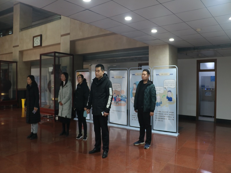 全体辅导员在科技楼二楼大厅参观巡回展览。
