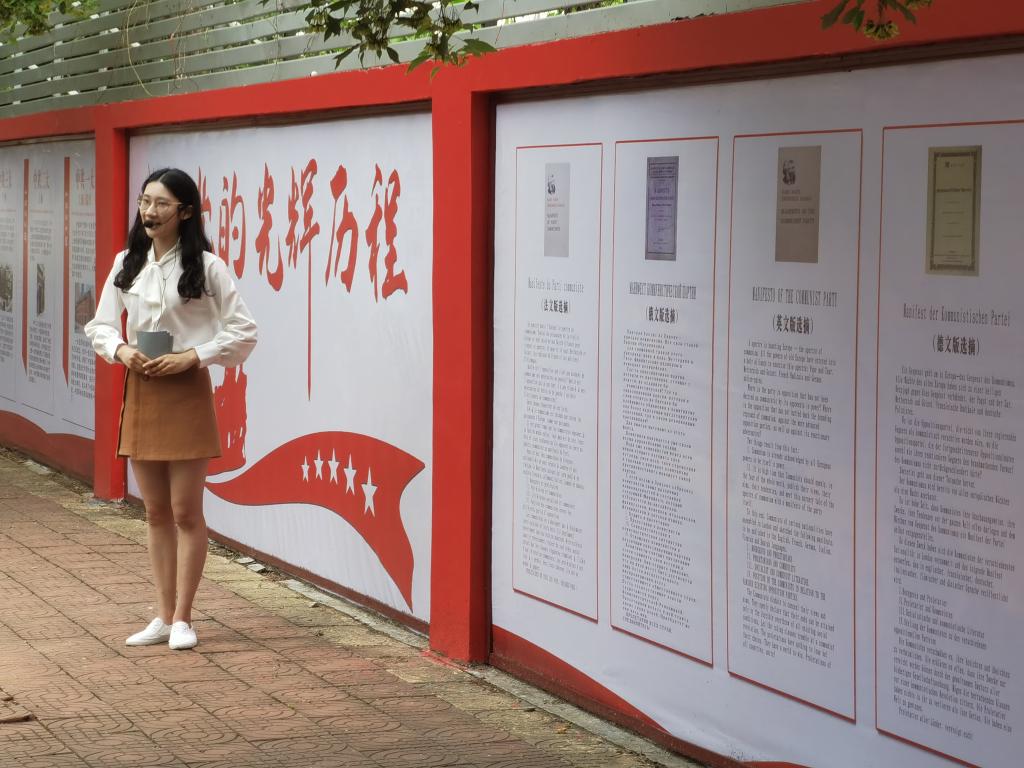 忆往昔峥嵘岁月,展未来任重道远。仪式结束后,翟欣然同学担任解说员,带领领导、老师和同志们参观展览。党史展览分为“党的光辉历程”和“中国共产党人的精神谱系”两个板块,大家跟随翟欣然同学的脚步,一起重温中国共产党的百年历史,回顾惊涛骇浪中,伟大的中国共产党人执掌航舵、带领中国人民顽强奋斗的光辉历史。