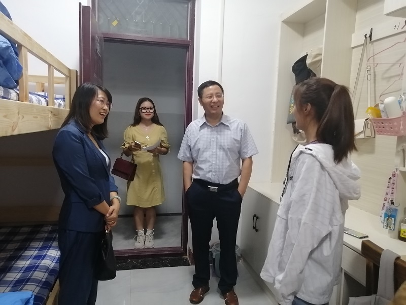党委书记费沂涛、院长秦洪武、党委副书记王作茂、副院长王洪明、英语系主任高歌、团委老师张晓、2020级辅导员王伟及2020届团委学生会干部代表走进西公寓、裕盛苑及研究生公寓,探访慰问2020级新生。
