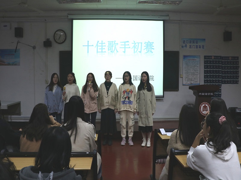 本次比赛共分为自我介绍和自选曲目清唱两个环节,选手们充分准备、巧妙设计,为我们带来了一场别具特色的音乐表演。选手们学以致用,将选唱曲目与自身特色、外语学习相结合,在动人的曲调中展现出外院学子的青春魅力。比赛在温柔动人的《陪你度过漫长岁月》中拉开了帷幕,随后2019级英语四班王开元、郭怡雯用中、英、日三种语言演绎的经典歌曲《后来》韵味十足,赢得了观众的阵阵喝彩。2020级英语二班刘金路凭借其扎实唱功改编并演唱的《小幸运》将现场的气氛推向高潮。最后,评委根据选手的综合表现进行评选。经过本次初赛的激烈角逐,共有5组选手成功晋级。