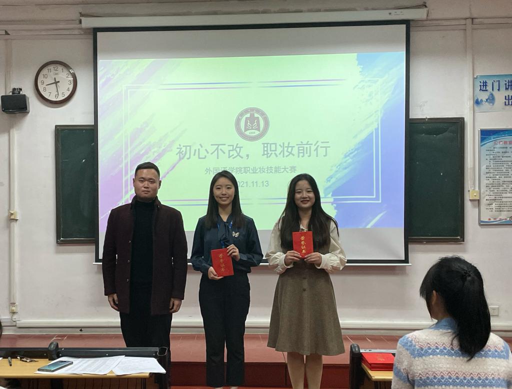 于系楼201室举办“初心不改,职妆前行”职业妆技能大赛。2018级辅导员赵文彬、女生部部长张天蔚、2020年校职业妆大赛一等奖获得者王智毅出席本次活动并担任评委。全体外院学子积极参与。