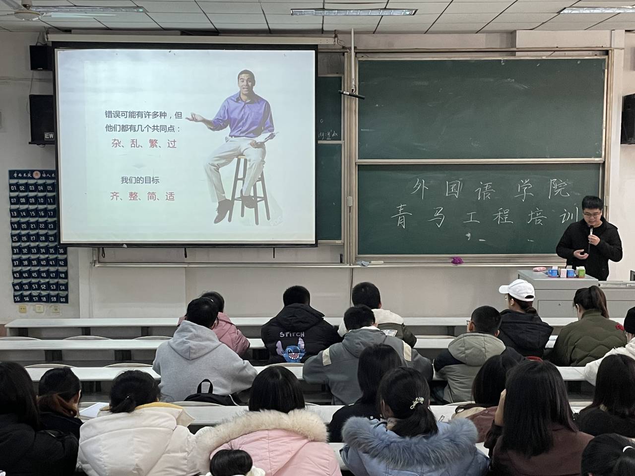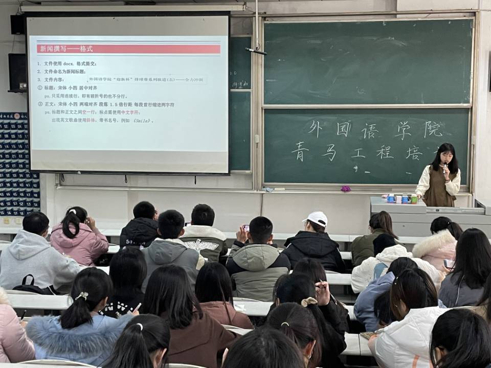 计算机协会会长于洪傲讲解了幻灯片制作中需要注意的系列问题,指出幻灯片制作应满足“齐、整、简、适”四原则,在座的同学纷纷表示受益匪浅。随后,宣传部副部长王依迪从格式与内容两方面系统地讲解了新闻撰写、策划案撰写和红头文件撰写的公文写作基础,强调了公文写作准确精简、严肃认真的重要性,有利于提高学生干部的业务能力。