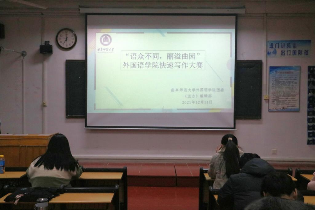 于系楼201室举办外语快速写作大赛。