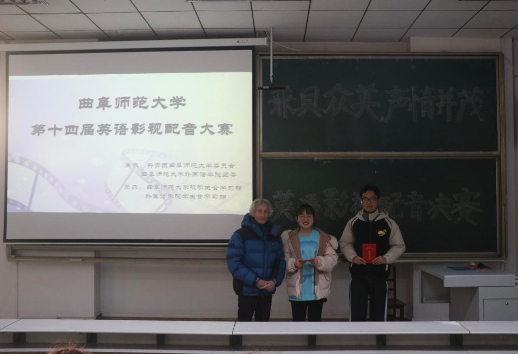 “兼具众美,声情并茂”,为使同学们充分体会英语学习的乐趣,进一步提高英语听说能力,增强语言学习效果,12月19日下午,亚洲杯投注 于综合楼201室举办英语影视配音大赛决赛。亚洲杯投注 英语系教师王海霞,外教Streeter、Roger出席并担任本次比赛的评委。