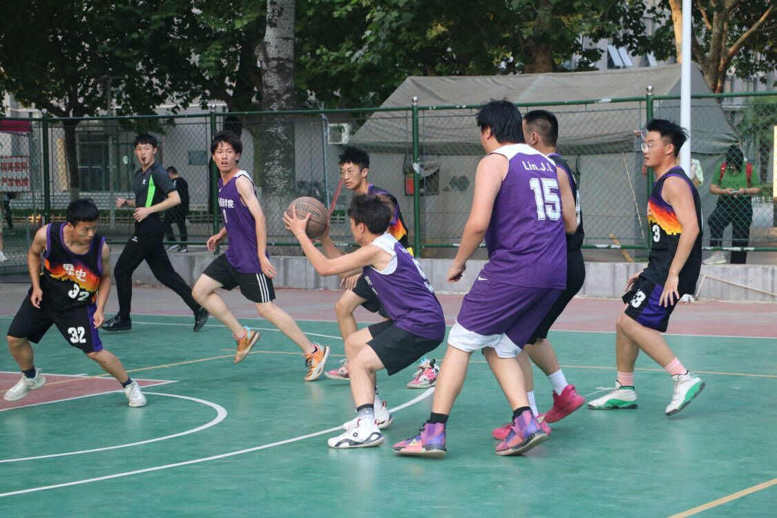 哨声响,赛事始。双方队员火力全开,突破、上篮、快攻、抢断,动作连贯如行云流水。狭路相逢勇者胜,双方很快进入了激烈的比拼。一个篮球,一身球衣,一路热血沸腾,同学们积极进攻,努力防守,每一个精彩瞬间都引来现场声声欢呼。炎热的球场上,男篮前锋李子涵展开启了一系列快攻和精准的投篮,内线冲杀给予了队友们极大的鼓舞。男篮控卫潘帅的三分远投让队友欢呼,让观众们沸腾!信念、耐力、精准配合与一腔热血在球场中凝聚;力量、拼搏、奋斗与不坚强在篮筐和记分牌上一一展现。默契的配合,从不需要过多的言语,一个眼神交流,一个手势示意,漂亮的转身,快速的起跳,配合一个完美的投掷,呐喊与尖叫声在赛场上瞬间响起。