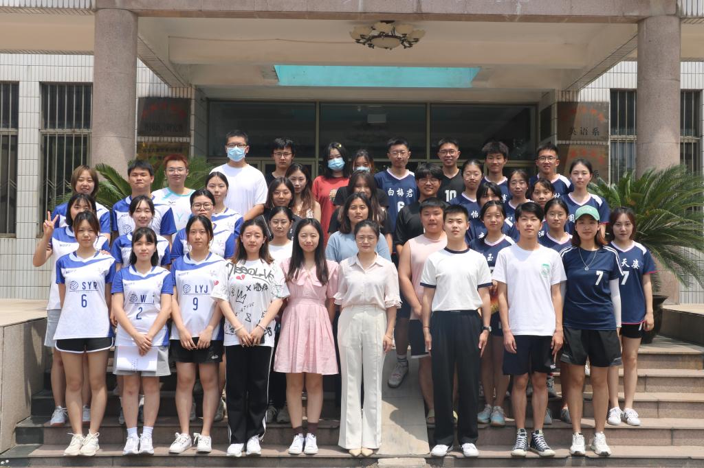 第九届班级排球赛决赛在系楼前排球场进行。本次比赛2020级英语一班与2021级英语二班角逐第一、二名,2020级俄语班与2021级法语班角逐第三、四名。