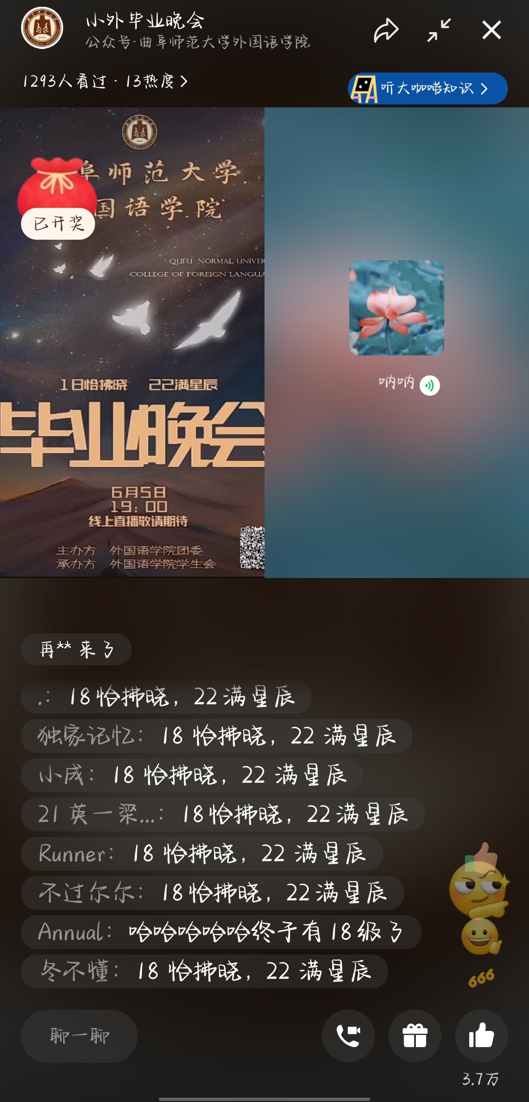 举办2022届“18恰拂晓,22满星河”毕业晚会。本次晚会采用线上直播方式,亚洲杯投注