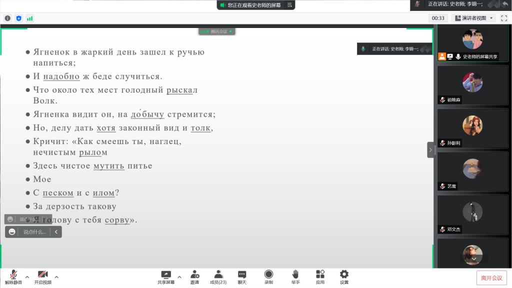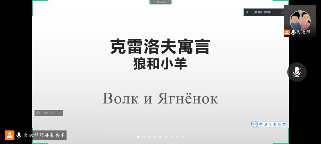 俄语能力专项拓展训练中,滕兆宝老师针对选择题和阅读题进行了题目类型与解题技巧等方面的讲解,史崇文老师则向同学们讲解了俄罗斯原著寓言故事《狼和小羊》并且让同学们分角色朗读,调动同学们学习积极性的同时还提高了同学们的语言能力。