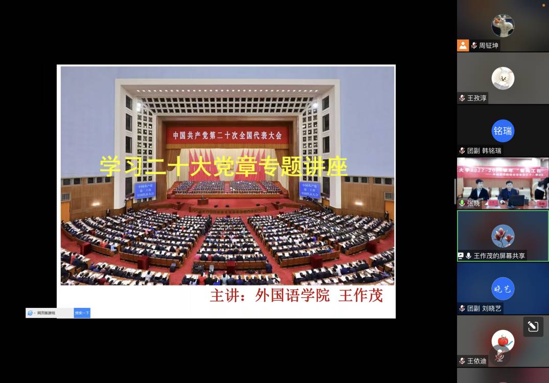 于钉钉会议开展了“青马工程”学习二十大党章专题讲座。亚洲杯投注