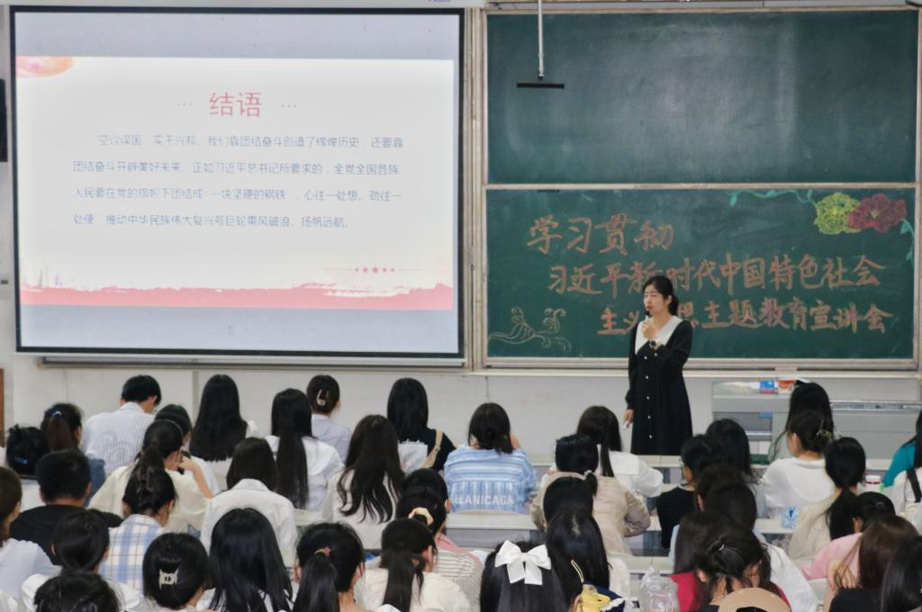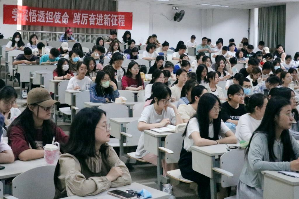 会上,宣讲团从优秀传统文化“两创”和“两个确立”科教融合两个专题进行宣讲。首先由宣讲团成员边爽从“坚持和发展中国特色社会主义政治宣言和行动纲领”的主题出发,围绕党的二十大主题、主要成就等方面对党的二十大精神进行了具体解读,积极引导同学们深刻领悟“两个确立”的决定性意义。其次由宣讲团成员唐金武围绕“推进文化自信自强,铸就社会主义文化新辉煌”主题,从新征程中意识形态工作的重大意义和面临的新挑战出发增强同学们的文化自信,鼓励同学们铸就社会主义文化新辉煌。最后,宣讲团成员田昭霖从“万山磅礴看主峰,党建引领事业兴”主题进行了细致的讲解,具体阐述了党的思想建设、精神建设、制度建设、作风建设、组织建设,加深了同学们对党的认识。