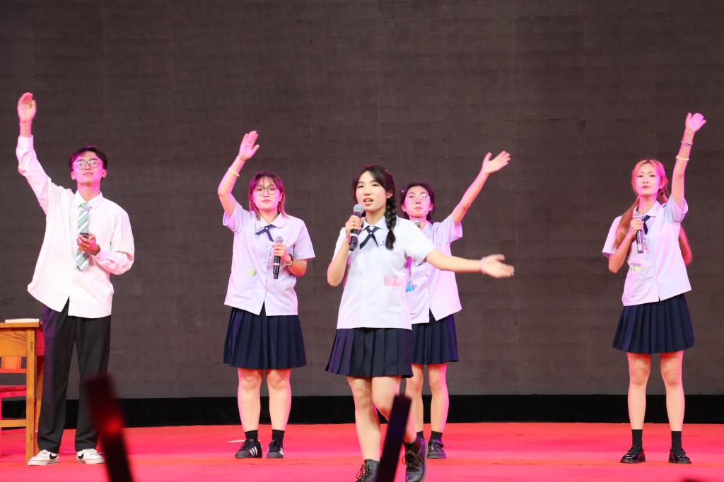 晚会开始前,同学们共同观看大学生活纪录短片,回忆青春年华,聆听老师寄语。在同学们的欢呼声中,晚会以舞蹈shooting star开场,活力四射,点燃现场气氛,彰显外院学子的青春活力。接着,刘韦妙、胥佳欣等人带来的歌伴舞《世界上的另一个我》和殷玉洁、丁祥宇等人带来的拉丁舞《无人区玫瑰》,将舞蹈与音乐相融,舞姿曼妙,尽显柔情。随后,相声《教你学英语》以幽默风趣的语言,表演活灵活现,让人忍俊不禁,引得阵阵掌声,将晚会推至高潮。在之后的表演中,陶踪令以一曲细腻传神的《贵妃醉酒》,带我们领略中华传统戏腔之震撼;高歌、王海霞老师以及张文哲等人带来歌伴舞《如愿》,声音治愈空灵、娓娓道来,寄托老师对同学们的热切期望,让人不禁感慨浓浓的师生情;辅导员张晓、赵文彬、李宝麒带来的歌曲《相亲相爱》,展现了外院的和谐友善、积极向上的氛围。最后,一首《明天你好》追忆往昔又眺望前路,表达了同学们对未来的希冀。至此,毕业晚会在袅袅歌声中落下帷幕。