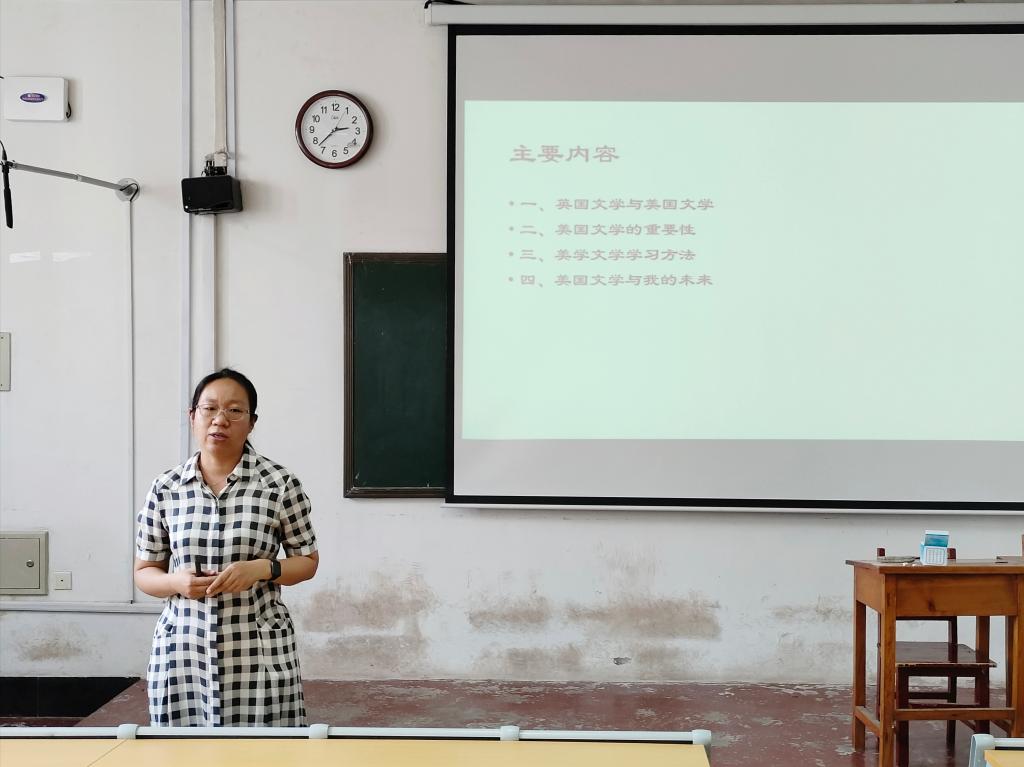兰海英老师针对2021级英语专业学生,开展专业课程专题系列讲座,主要讲解英美文学,点明其重要性并介绍相关学习方法,她结合国内外考研形势就文学类面试技巧、文学素养的积累、文学类论文情况及科研方向等进行详细讲解。
