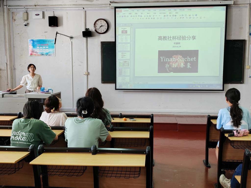 在专业竞赛交流会上,杜颖琪、刘晨歌、耿鑫漪同学以“高教社杯”和“‘外研社•国才杯’短视频大赛”竞赛为例,向2022级同学们系统介绍了竞赛的准备流程、竞赛作品的呈现形式以及自身的竞赛经历等,为同学们的视频设计提出宝贵建议,加深同学们对竞赛的了解。