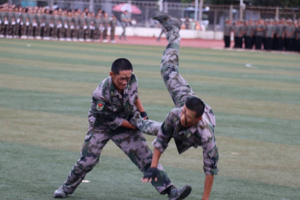 2023级学生们满怀激情、严阵以待。跑步连、起步连、旗语连、内务连、心理健康操方队、应急棍术连、捕俘拳方队依次接受检阅。每只连队动作干练利落、有条不紊。随后,军训教官们带来了捕俘刀、倒功擒拿和战地反恐表演,赢得全场阵阵欢呼。