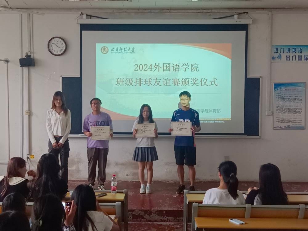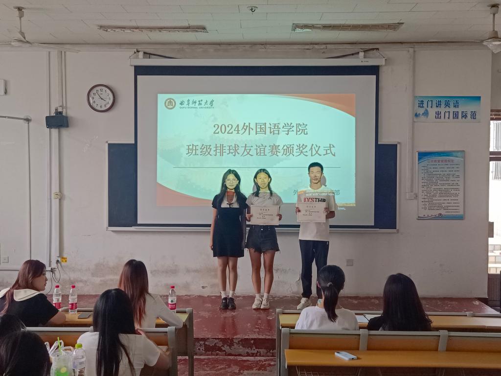 学生会副主席刁嘉宜,秘书长王梓扬,体育部部长栾文秀为获奖队伍、优秀教练和优秀裁判员颁发荣誉证书。随后,外院男排的表演赛为本次比赛画上圆满句号。