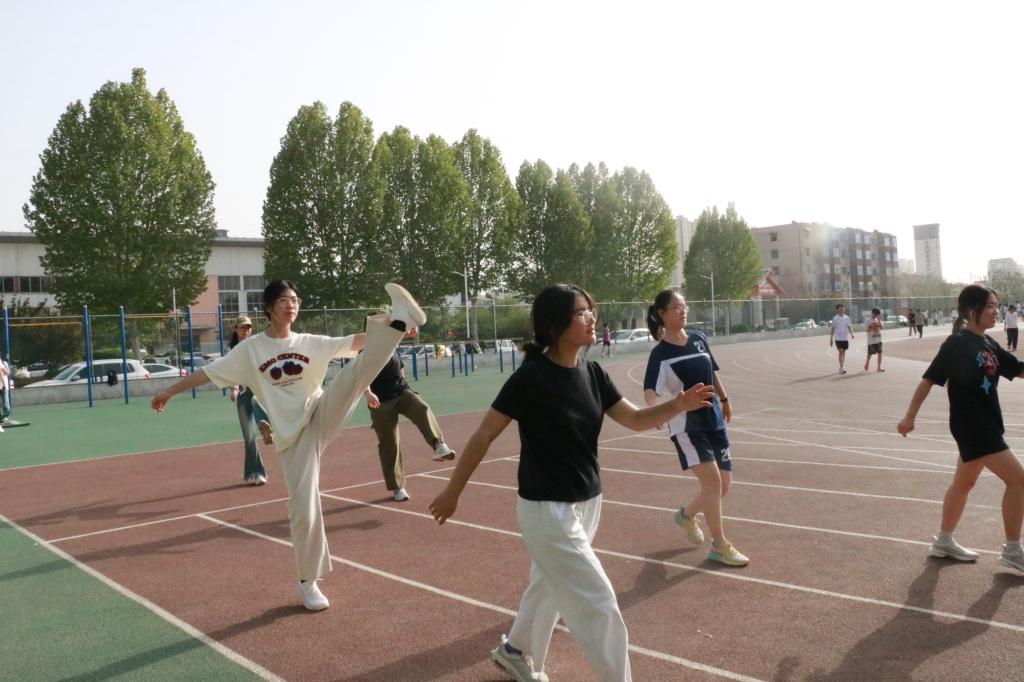 党委副书记王作茂,本科生辅导员王仁杰,徐明涛,赵文彬,王伟来到西操场训练场地,对刻苦训练的运动员们进行关心和鼓励。