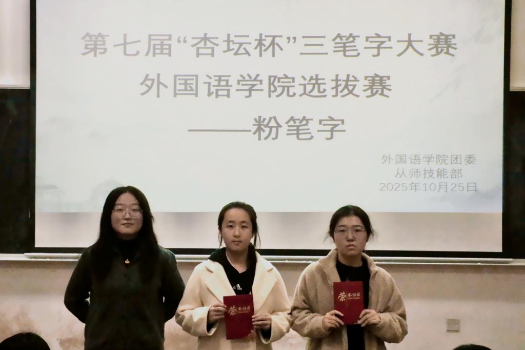 本次三笔字大赛的举办,不仅有利于让学生们在一笔一画中感受汉字魅力,更有利于为师范生未来的讲台板书打下基础,让中华优秀传统文化在校园里焕发新活力。预祝外院学子在接下来的校级比赛中斩获佳绩。