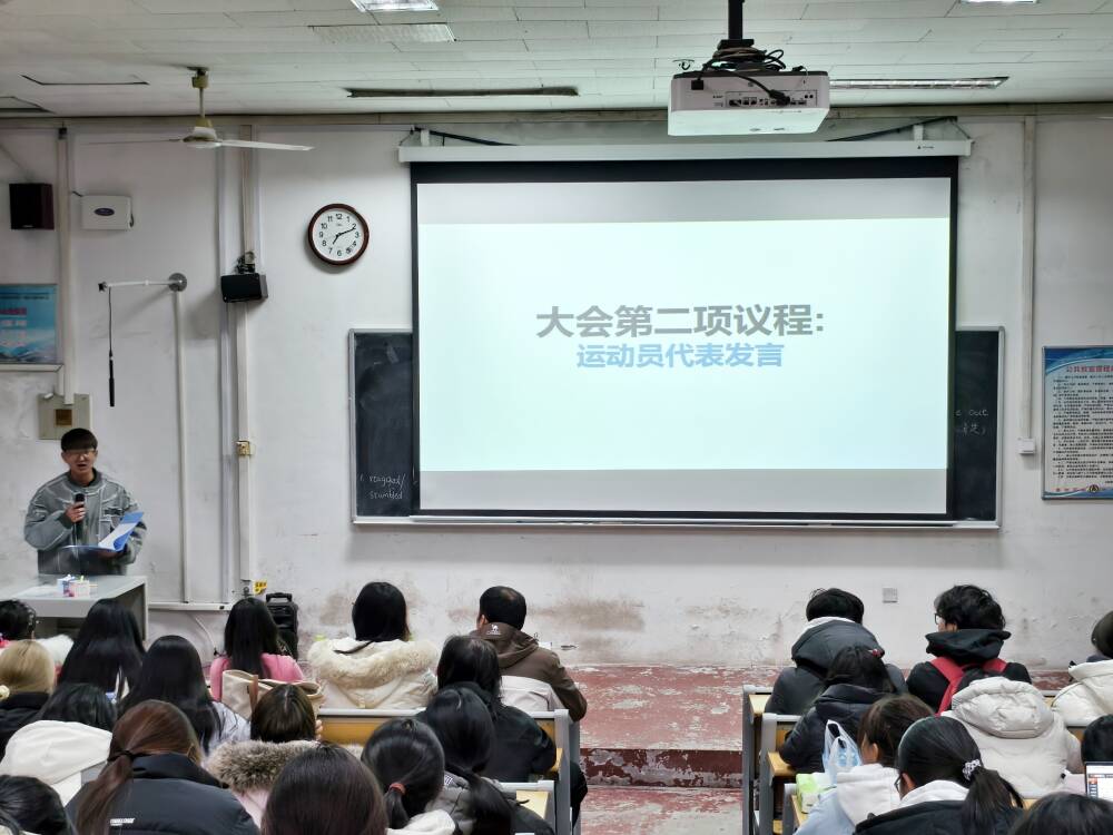 为了激励学生积极参与体育锻炼,11月17日晚,亚洲杯投注 于系楼101召开冬训动员大会,2023级辅导员徐明涛及2025级全体本科生参加了本次大会。