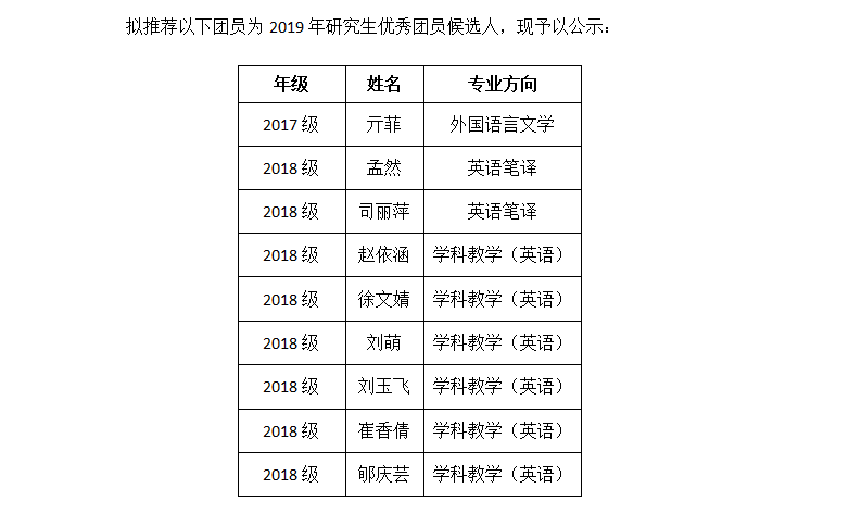 参选学生为2017级和2018级毕业研究生,其中,亚洲杯投注 2017级学术型研究生团员总数为14人,优秀团员1人。2018级毕业研究生团员总数为75人,优秀团员8人。其中学科教学(英语)54人(优秀团员6人),英语笔译21人(优秀团员2人)。2017级和2018级团员总数共计89人,优秀团员共计9人。