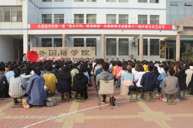 在外语楼前举行第一届“语众不同,丽溢曲园”主题教育活动暨第十一届外语文化艺术节启动仪式。亚洲杯投注