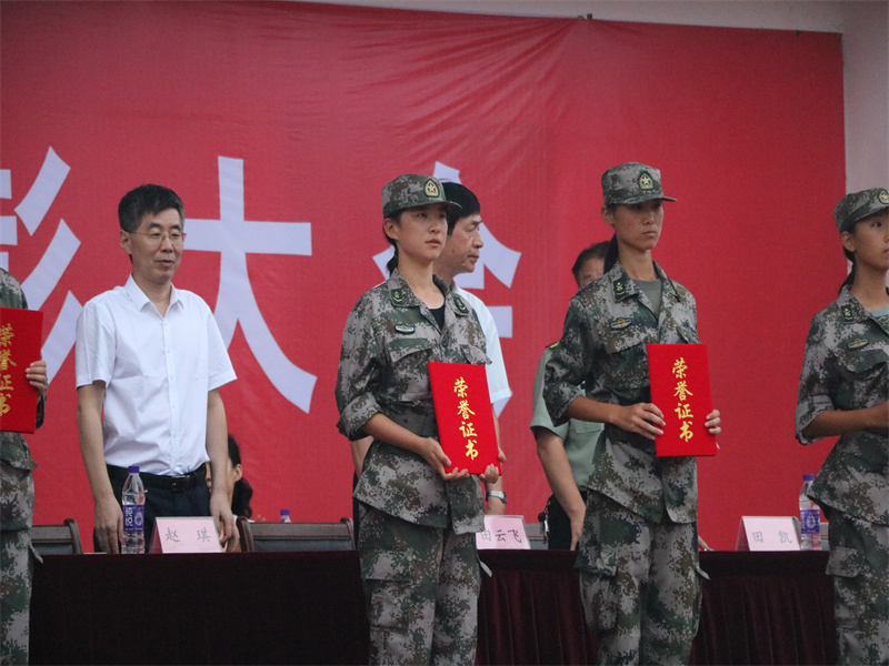 会上宣读了军训成果表彰决定,亚洲杯投注 荣获学生军训工作优秀单位和学生军训内务卫生先进单位,亚洲杯投注 2021级辅导员王仁杰被授予2021级学生军训工作优秀指导的称号,三营七连荣获优秀连队,学生“爱我国防”演讲获优秀奖