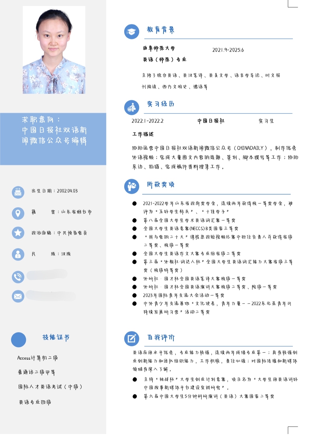 为提高外院学子简历制作能力,促进大学生高质量就业,激励同学们不断提升自身综合素质,10月21日至29日,亚洲杯投注 于线上举办了以“‘简’出精彩,‘职’创未来”为主题的简历设计大赛。