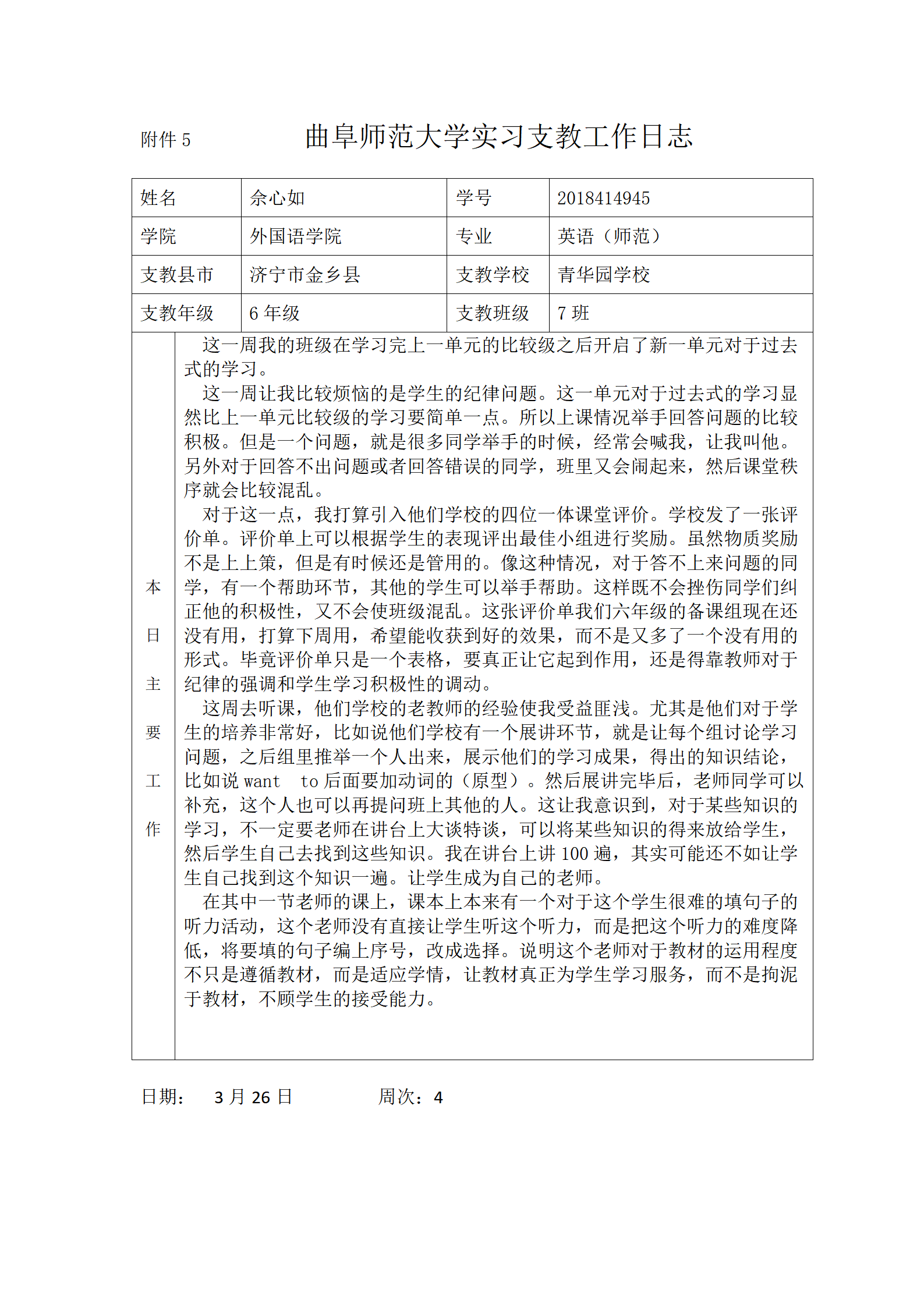 支教生活有苦有甜,支教实习生被学生的热情活泼打动,并与学生建立深厚友谊。教学相长,支教实习生的教学水平也在与学生的交流中不断提高。于希晴同学在金乡县中心小学兴隆分校区进行英语课程实习支教。通过一个月以来的悉心付出,她的教学能力明显提高,得到了实习亚洲杯投注 胡玉东校长的高度评价,也获得了学生家长和实习亚洲杯投注 教师的一致认可,认为她有正式教师的教学水平。