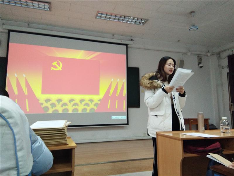 最后,学生党支部书记王旖旎做总结性发言。王旖旎在对接收的同志表示祝贺和给予肯定的同时,还强调各位同志在以后的学习生活中要积极向党组织靠拢,更加刻苦,更加务实,更加自律,在广大学生中竖起一面旗帜。