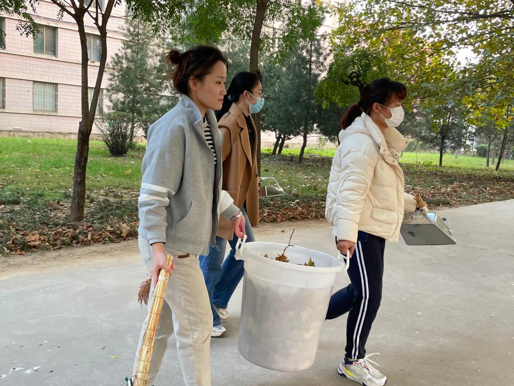 全体同志每天早晨7点准时到达指定区域,他们分工协作,干劲十足。秋风萧瑟,落叶纷纷,他们发扬不怕苦、不怕累的优良作风,将路上、草坪上以及树坑中的垃圾、落叶清理干净,不放过任何角落。他们让卫生区焕然一新,为环境清洁贡献了力量,用实际行动诠释了全心全意为人民服务的宗旨。