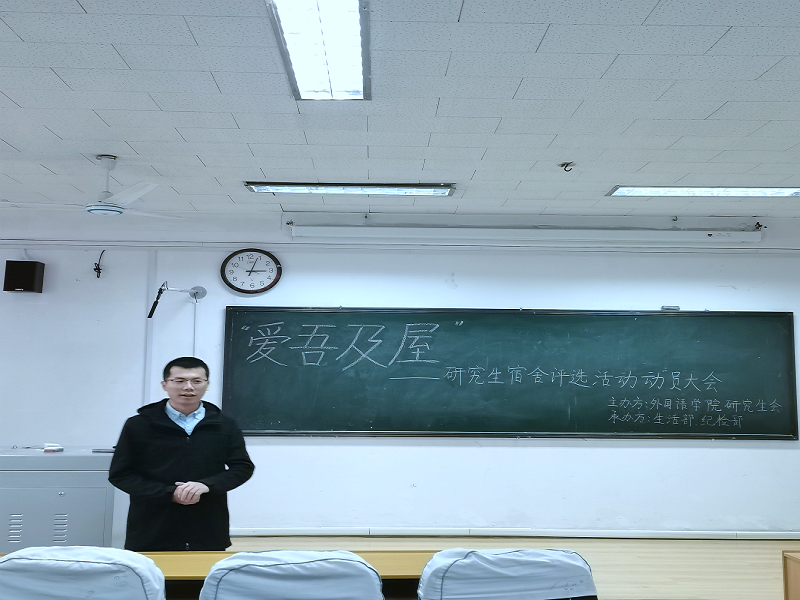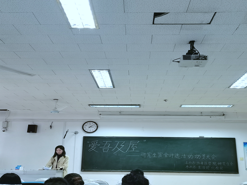 在301教室顺利召开了 “爱吾及屋——研究生宿舍评选活动动员大会”。出席本次动员大会的有研究生辅导员伊纪昌老师和研究生会副主席孙娜娜。本次大会由研究生会纪检部部长董晓月主持,研究生各年级班级负责人、纪检部和生活部全体成员参与了此次大会。