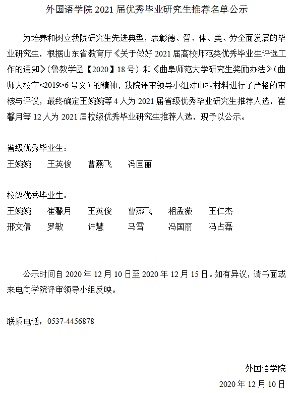 亚洲杯投注 2021届优秀毕业研究生推荐名单公示