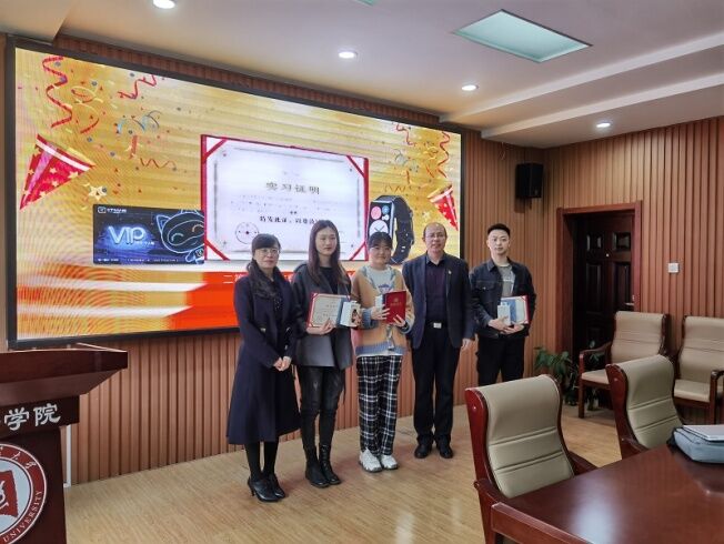 在接下来的颁奖环节中,徐欣老师、邢加新老师、王洪明副院长与葛玉梅总经理分别为参与实习的MTI实习生、三等奖MTI实习生、二等奖MTI实习生颁发结业证书与结业奖品并合影,秦洪武院长与江心波CEO为一等奖的MTI实习生颁发结业证书、结业奖品和入职offer并合影。