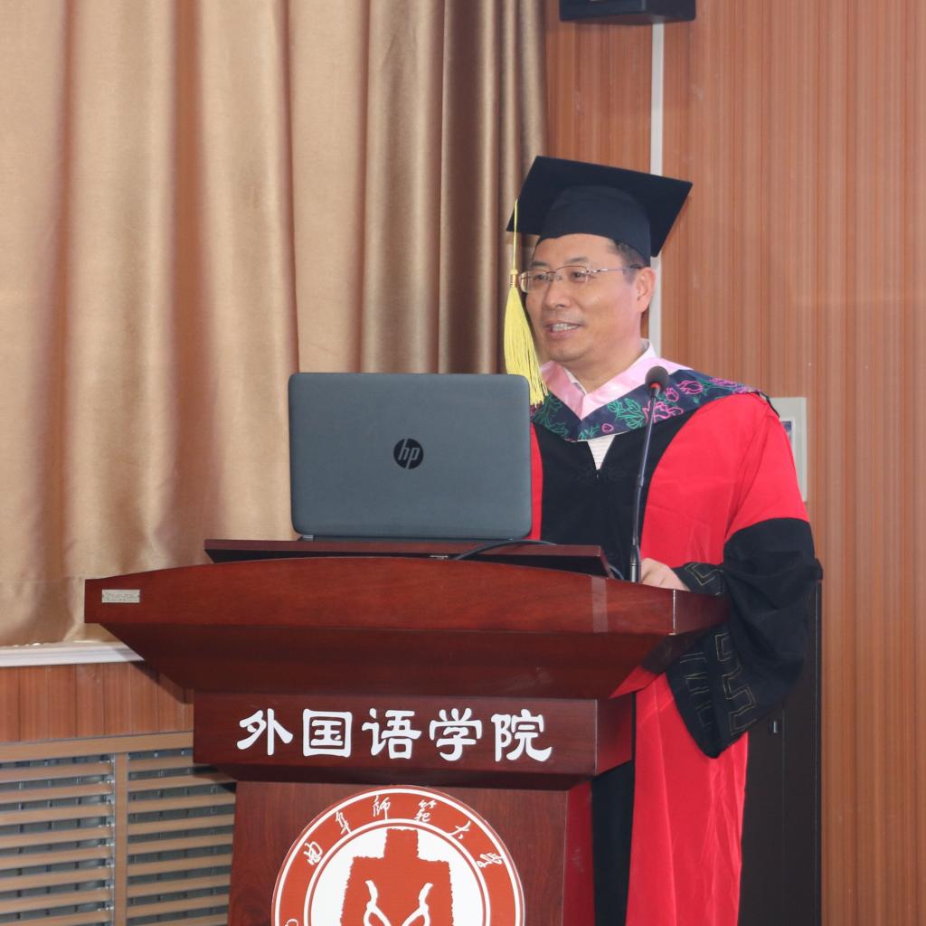 向毕业生们表示热烈的祝贺,希望毕业生能够秉持勤奋好学的颜回精神,创造精彩人生,成为国之栋梁。随后,院长秦洪武教授为获得硕士及学士学位的毕业生行拨穗礼并颁发学位证书,祝福外院毕业生以此为起点,振翅高飞,开启多彩的人生航程。