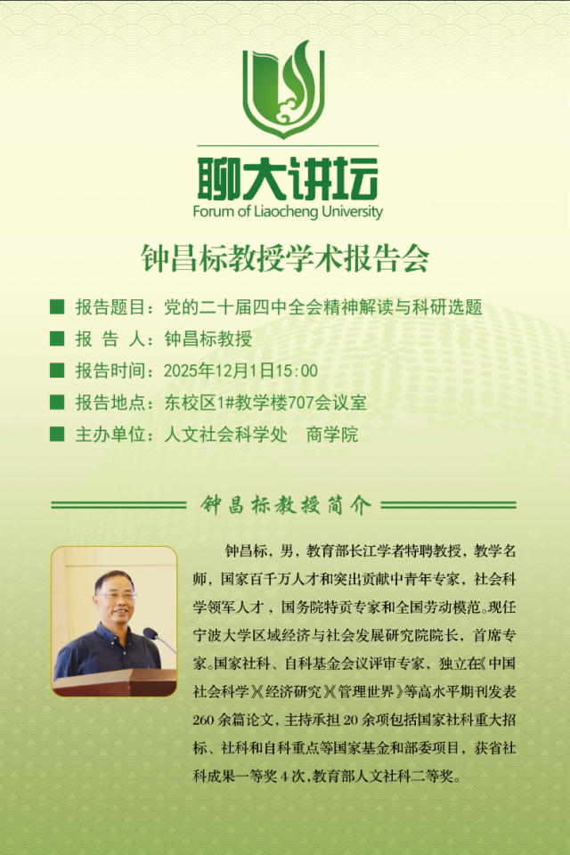 亚洲 杯投注 讲坛:钟昌标教授学术报告会