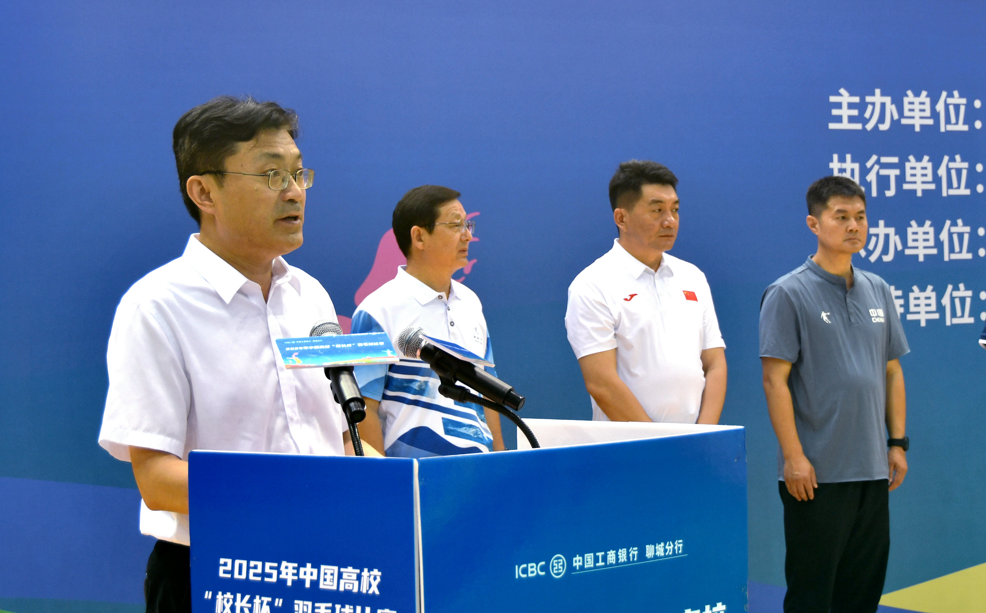 教育部学生体育协会联合秘书处副秘书长、中国学生体育联合会副主席满开杰,中国学生体育联合会副主席刘宝平,山东省教育厅党组成员、副厅长王浩,聊城大学党委书记关延平,聊城大学党委副书记、校长白成林,聊城市人民政府副市长马卫红,中国学生体育联合会大学竞赛部主任籍强,中国羽毛球协会副秘书长沈惠,中国学生体育联合会大学羽毛球分会秘书长裘鹏等领导嘉宾出席比赛开幕式。开幕式由聊城大学党委副书记房增福主持。